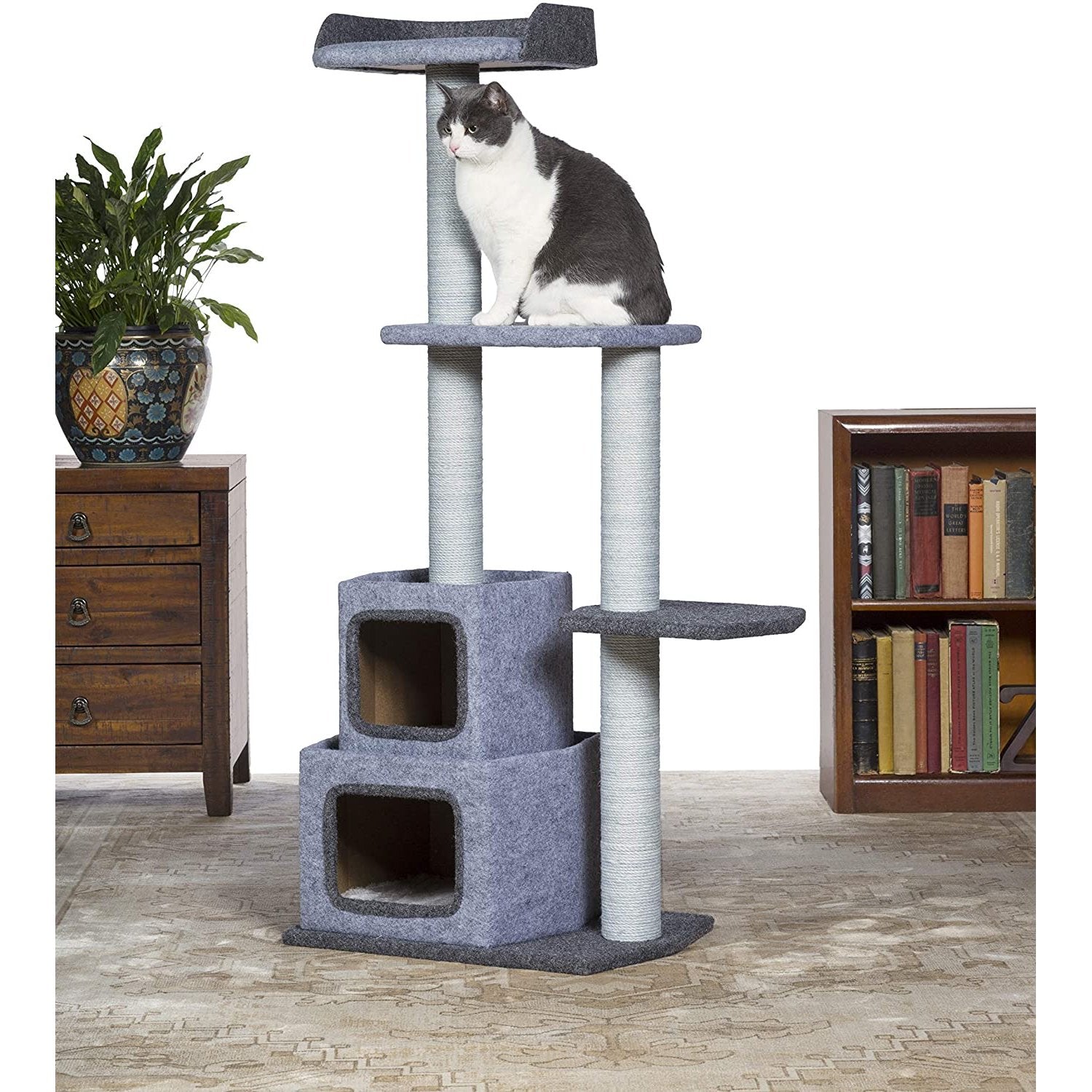 - At 4 1/2 foot tall, this cat tree utilizes vertical space and a compact footprint to save space in your home